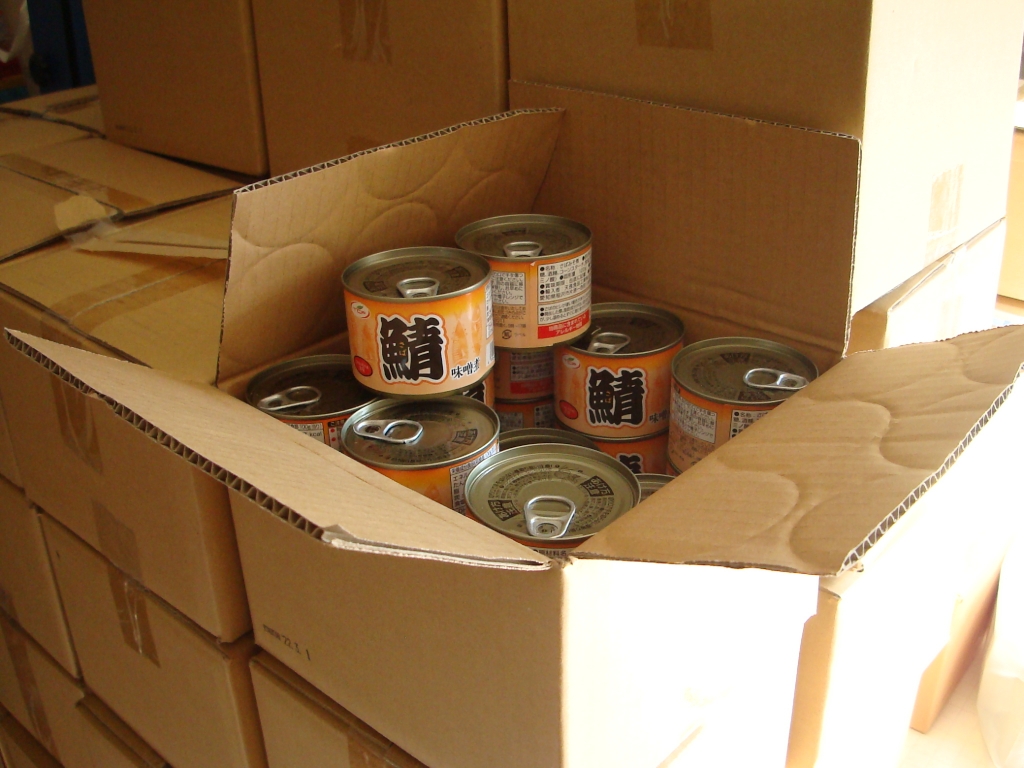 あいち子ども食堂ネットワークの青木さんから鯖缶85ケースをいただきました。