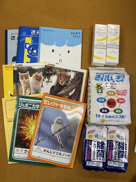 大阪市在住者さんから掃除用品、学習帳、アルコールタオル、