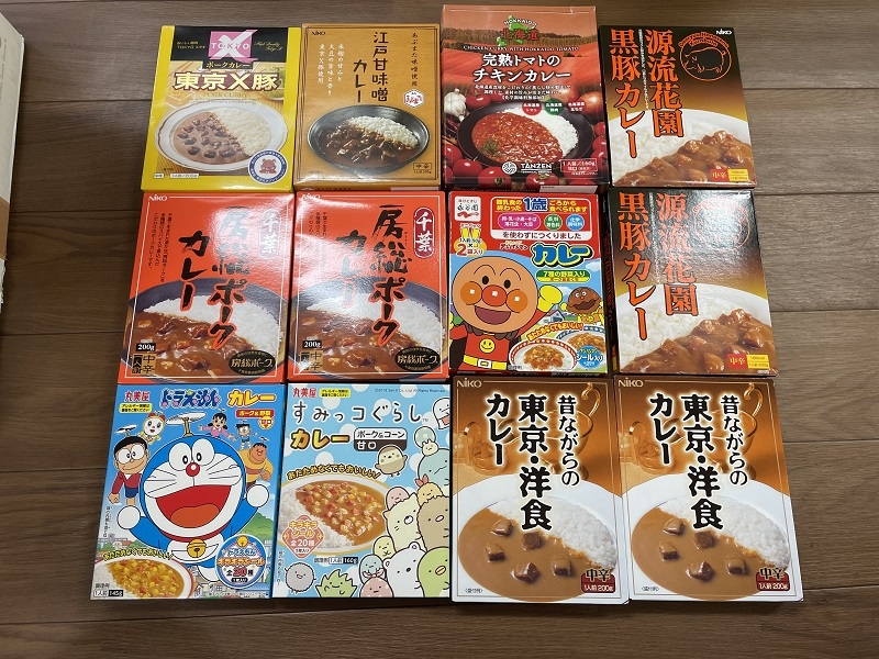 丸岡さんからカレー、デリシャスソース、シーチキン、コンビーフ、はごろも煮、うどん、ぱすた、シチューをいただきました。