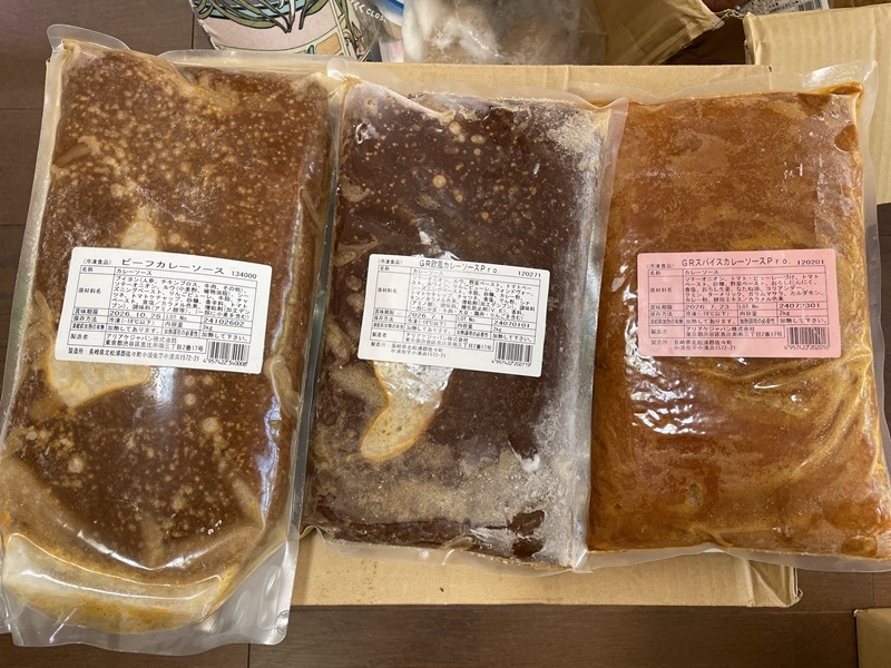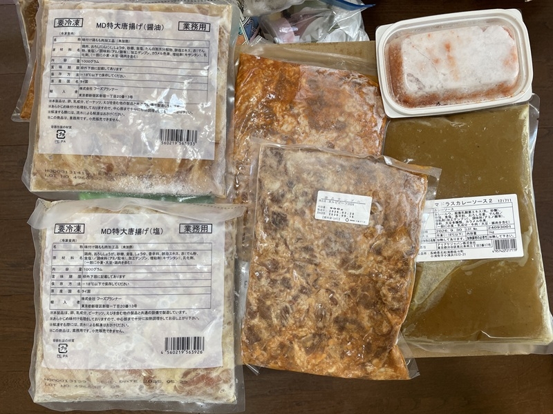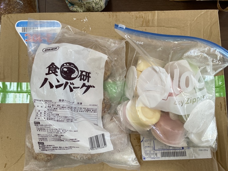 魁力屋さんからカレーソース、冷凍から揚げ、冷凍ハンバーグ、アイスを頂きました。