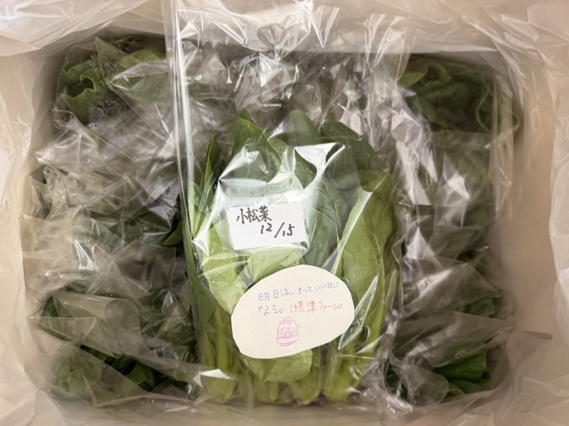 12月のご支援品12/24 小松菜、チンゲン菜